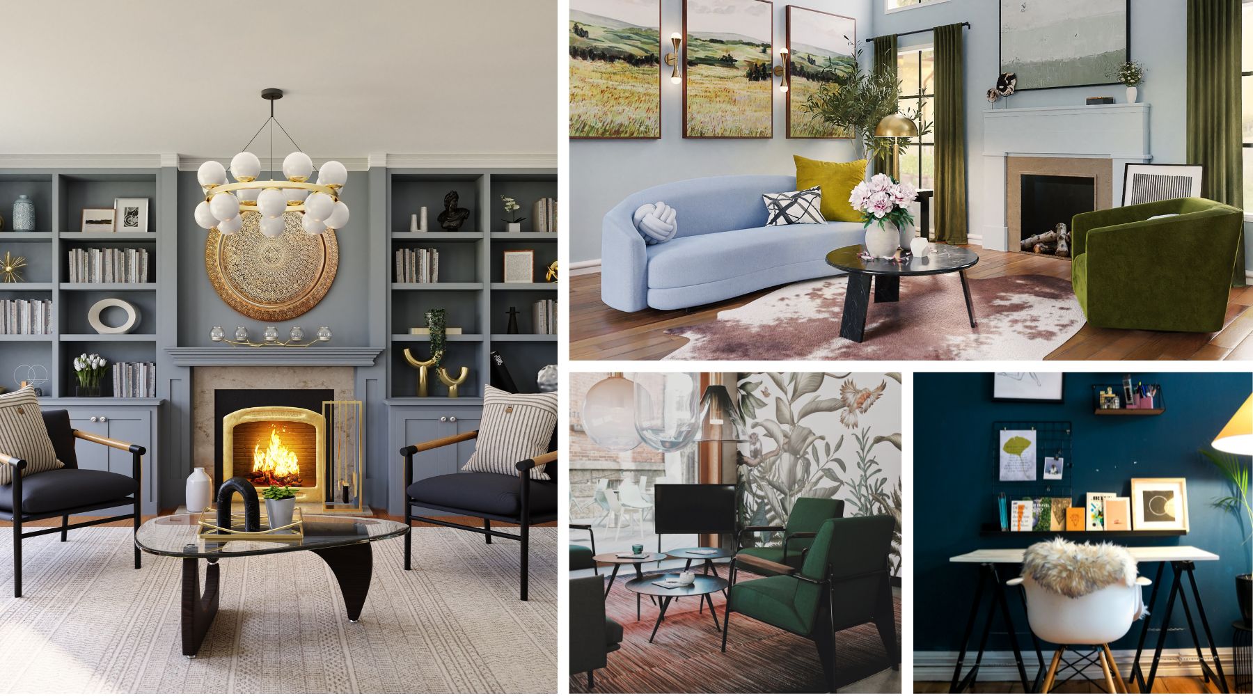 • Make the most of gilded mirrors, vases, indoor plants and planters, standalone decorative pieces, and chic mid-century modern furniture